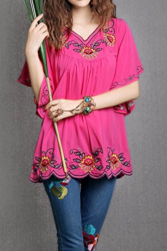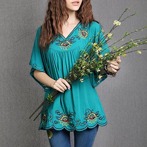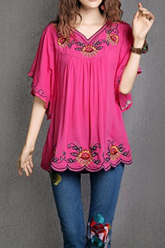 -. Feature : Material: Cotton Blend / One size fits to US 0-4: Length: 70cm(27.56'') ; Shoulder: 38cm(14.96''); Bust 90cm(32.0''); Sleeve: 25cm(9.84'') / Style:Causal, street way, leisure / Pattern: Flowers embroidered blouses tops / Season:Spring, Summer and autumn