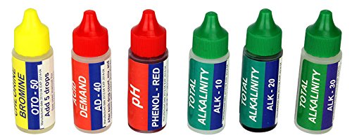 -. Feature : Provides a simple and easy way to measure pH, chlorine, bromine, alkalinity and acid demand. / Includes six 1 (one) fl oz reagents / Convenient, sturdy blue storage case Weight: 0.5 LBS / Instructions, easy to read color chart, and a trouble prevention guide are included / It comes only with Skroutz unique E-BooK