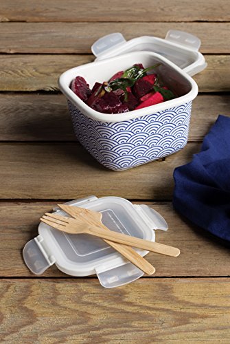 - Each container is made from porcelain. A plastic lid with four tab closure is included