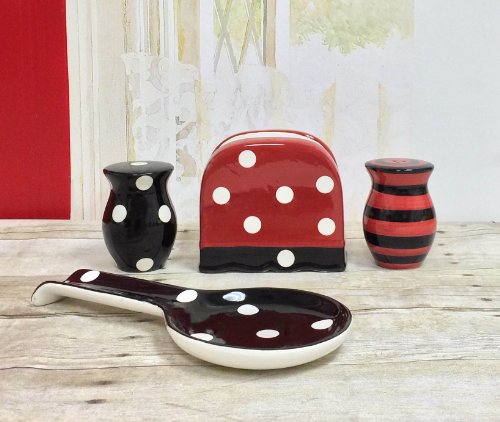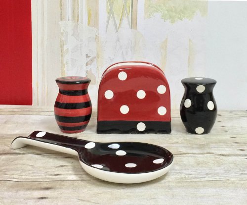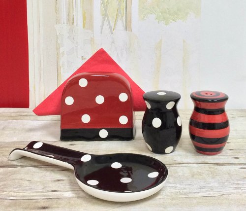 Black Red Polka Dot Collection Handcrafted Ceramic Table Top Set, 86525/28 by ACK