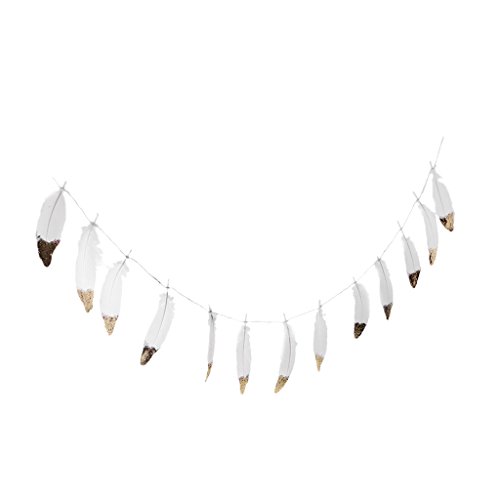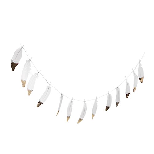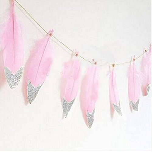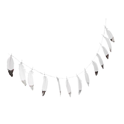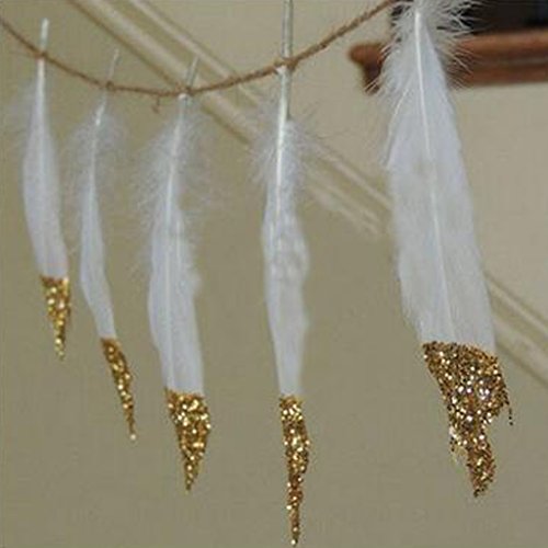 -. Feature : Material: Artificial Feather, Twine / Whole Length: 2 m/ 2.2 yd; length of Feather: 12-15 cm / 4.7 - 5.9 in / A string of glitter gold / silver dipped feather garland, 13 pieces in total / Great wall hanging tassel garland for boho style nursery, woodland nursery, girls room, baby shower, kids & baby's birthday parties, wedding etc / Perfect for dream catcher DIY