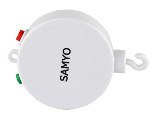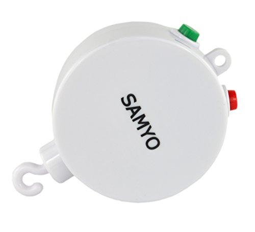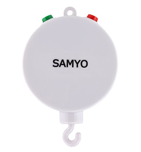 -. Binding : Toy -. Brand : SAMYO -. Color : White -. EAN : 0619955066735 -. Feature : Plays Twelve Beautiful Tunes(not the entire song) with the mobile slowly rotating. / Can be installed on baby's bed, Just the mobile without arm. / Easy to operate. The red button is for on/off,the green button is for next song. / Battery-operated by 2 AA batteries(Batteries not included). / Material: ABS without pollution. Color: White. -. IsAdultProduct : 0 -. Label : SAMYO -. Manufacturer : SAMYO -. MPN : 3187079 -. PackageQuantity : 1 -. PartNumber : 3187079 -. ProductGroup : Toy -. ProductTypeName : TOYS_AND_GAMES -. Publisher : SAMYO -. Studio : SAMYO -. Title : Samyo Baby Crib Baby Bedding Battery-operated Musical Mobile Plays Twelve Tunes (Without Arm) -. UPC : 619955066735