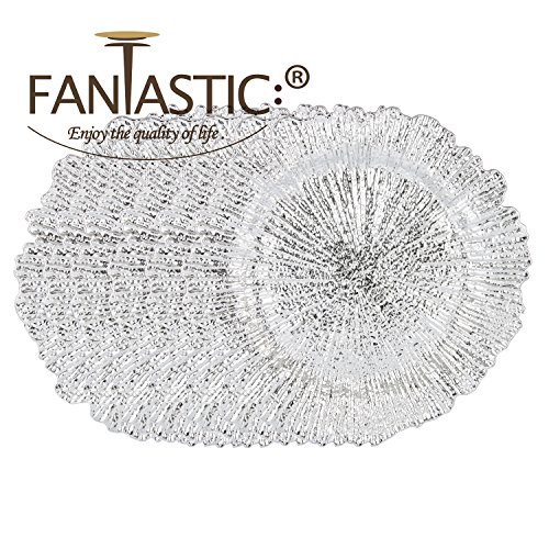 Studio : Forao artcrafts Publisher : Forao artcrafts Product Description we got set of 6 pieces and 24 pieces When setting the table for your next dinner party or service consider the shape of the objects on the table as well as the color If your table could use a unique change The Hammer round charger with metal finishing catches the light Creating a dazzling table for you next special event while the square shape contrasts nicely with round plates or bowls These chargers are available in six different colors.Gold,Silver,Red,Green,Gungrey,Copper Welcome to Fantastic:) Enjoy the quality of your life