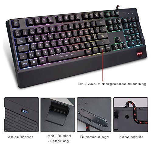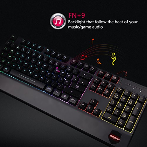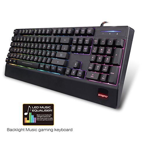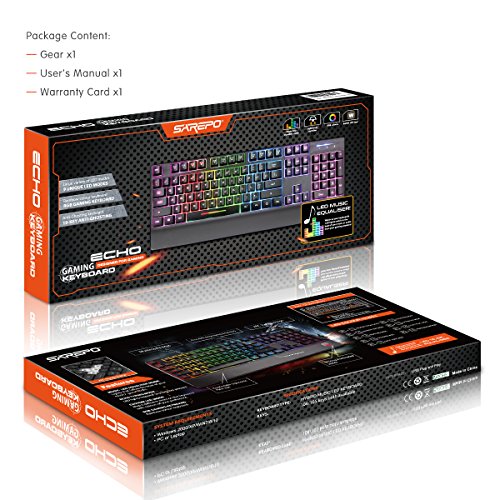 Gaming Keyboard SAREPO Led Backlight - Echo Music LED Equalizer Mode 9 Multicolor Backlight illuminated gaming keyboard with 19 Anti Ghosting Keys for Mac and Windows