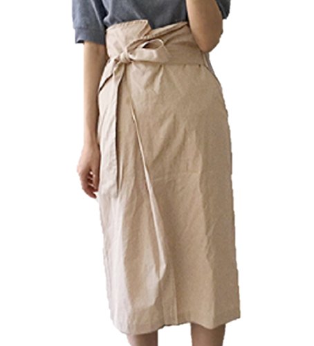 -. Title : nijuh スカート ハイウエスト リボン ウエストゴム 無地 ミディ丈 ひざ下 Aライン スリット レディース
