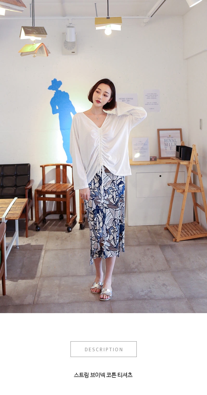 딱 좋은 깊이의 브이넥 라인과 앞중심선 따라
