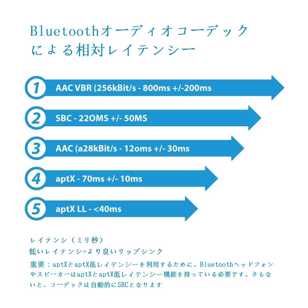 By adopting aptX LL, you can limit the audio delay to a small limit effectively, and you can comfortably watch wireless audio and video without delay.