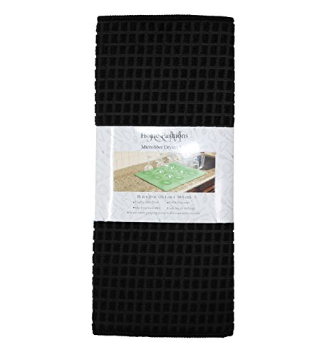 J & M Home Fashions Microfiber Check Drying Mat, 15 by 20-Inch, Black