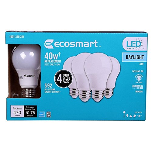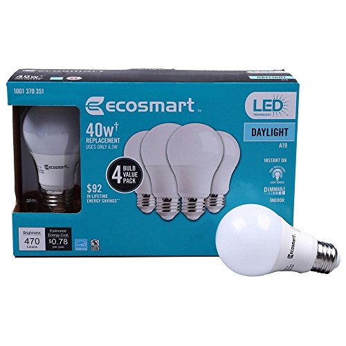 EcoSmart 40W Equivalent Daylight A19 Energy Star + Dimmable LED Light Bulb (4-Pack)