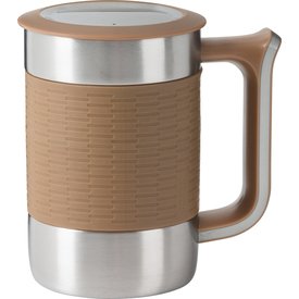 -. Feature : 15 ounce stainless desk mug with a satin stainless steal and brown leatherette finish / Stainless steal double wall insulation, keeps beverage hotter or colder longer / 360° drinkability, drink from anywhere around lid / Guaranteed leak-proof / Hand wash recommended