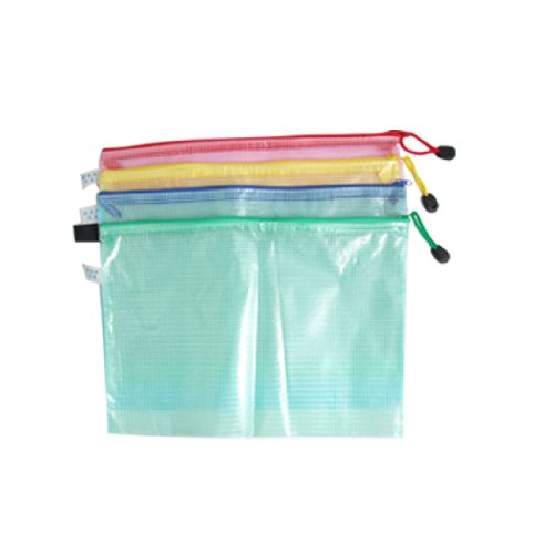 -. Feature : Product Name : Files Bag; Closure Style : Zipper Closure / Interior Style : Netting Design; Material : Soft Plastic / Bag Size(Each One) : 23.5 x 18cm / 9.2" x 7"(L*W); Fit Paper Size(Max) : 23 x 17cm / 9" x 6.7"L*W) / Straps Length : 5.5cm/ 2.1"; Main Color : Blue, Green, Pink, Yellow / Weight : 135g; Package Content : 4 x Files Bag