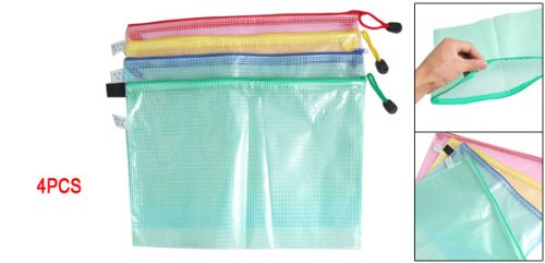 -. Title : Uxcell Plastic Net Zipper Bag Paper File Holder, 4-Piece, Four Colors