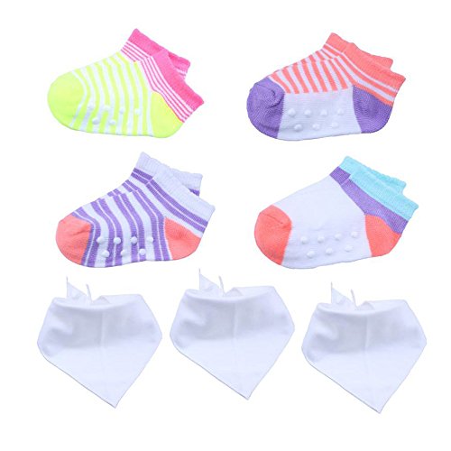 KimmyKu Baby Girls Boys Cotton Breathable Socks Booties and White Bibs Headband Set