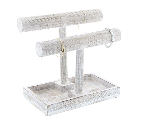 Studio : Deco 79 Publisher : Deco 79 Binding : Kitchen Product Description 11" x 12" Rustic Reflections wood jewelry holder, two T-bar jewelry hangers made of mango wood with distressed white finish, rectangular base with distressed white finish, features round carved details (jewelry not included) 0