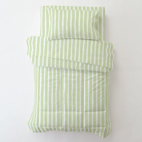 Studio : Carousel Designs Publisher : Carousel Designs Binding : Baby Product Product Description Toddler pillow case in Pastel Green Weathered Stripe, with pillow. Our toddler pillowcases are designed to be a perfect fit for our toddler pillows, and are guaranteed to be a comfy fit for your toddler! Measures 14" x 21". Pillow included, measures 14" x 20". Our toddler pillows are made with recyclable hypoallergenic polyester fiberfill. 0