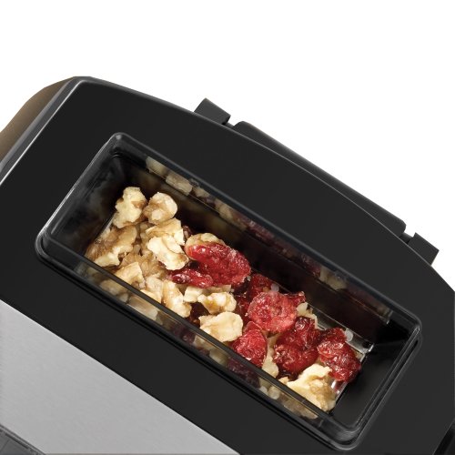 Our final exclusive patented feature is our automatic fruit and nut dispenser. This handy feature allows you to add up to 2/3 cups of fruit and nuts into the dispenser to release automatically at the right time for perfect fruit and nut bread without waiting around. Instead of waiting around to add the fruits and nuts into a loaf at the add ingredient beep, the machine does it for you automatically. This way, your family can enjoy hot baked cinnamon raisin bread for breakfast without waking up before the sun rises to add the raisins.