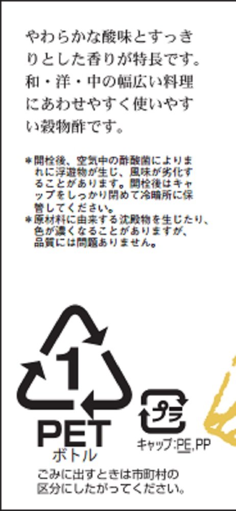 Rice, soft cereal vinegar with acidity brewed from sake making using sake cake as a raw material.