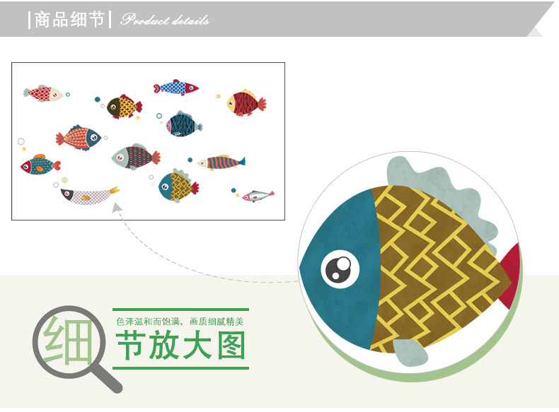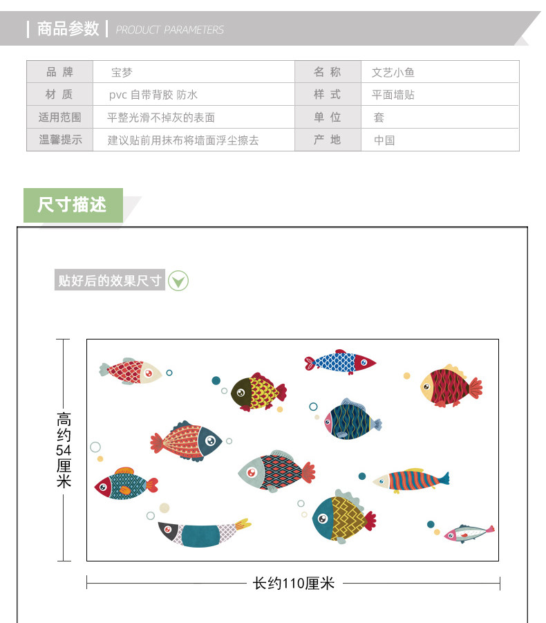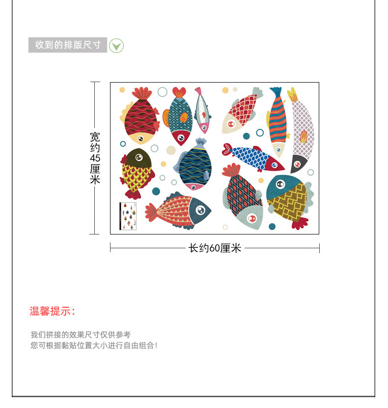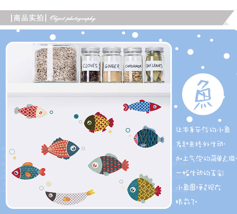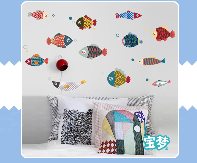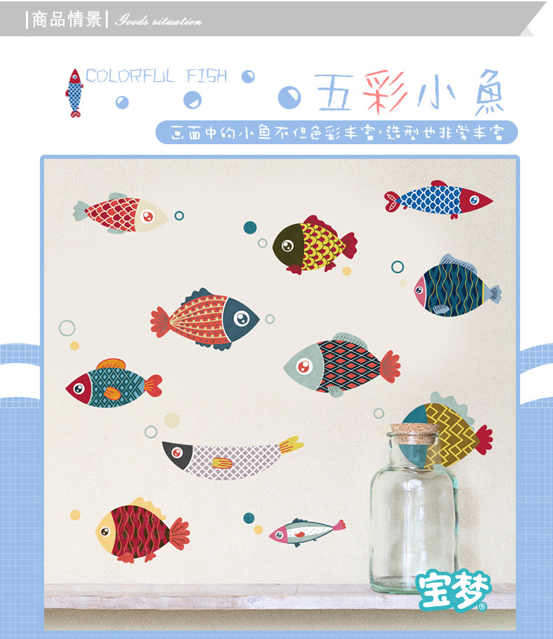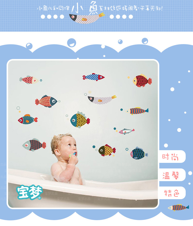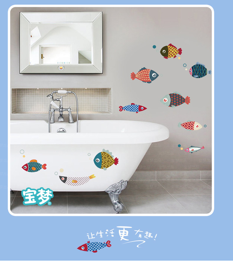 文艺厨房浴室卫生间防水墙贴纸创意日系手绘彩色小鱼自粘墙纸贴画