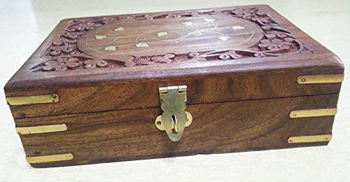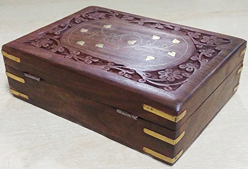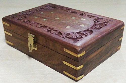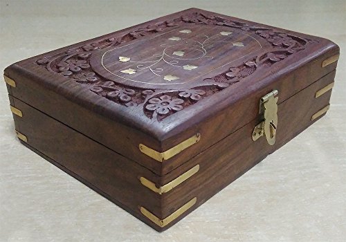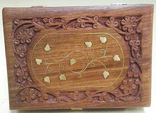 Handmade Wooden Storage Case Jewelry Box 7" x 5" - Gifts for Women (Flower Carved)