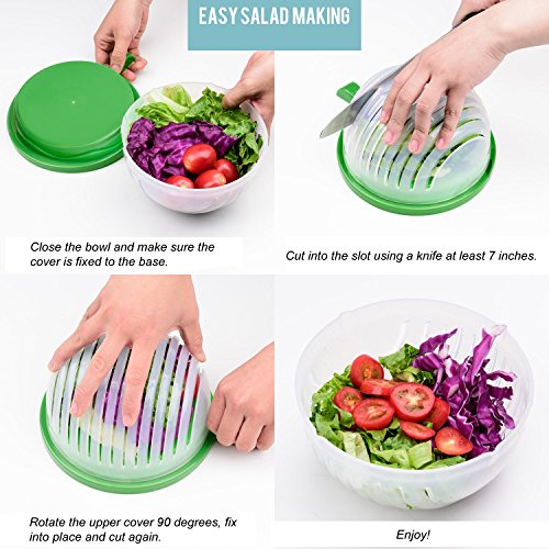✔️ SAFE - Prepare a healthy meal quickly & safely. Slits in the bowl guarantee safe slicing while making your salad. No more cutting your fingers! Simply fasten to the base, and follow each slot with the blade.