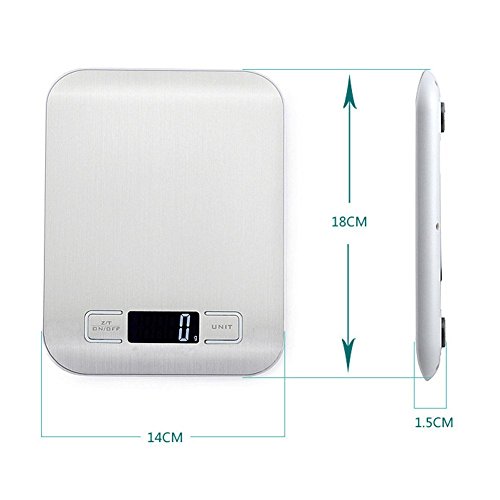 Simple, easy and accurate digital kitchen scale weighs up to 22 Ib/ 10kg Resolution: 0.01oz/ 1g. Easily choose between measurement pounds/oz/ mL kg and grams, effortlessly measure solid food or volumes of water and milk, perfect for baking, cooking…