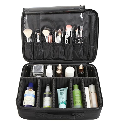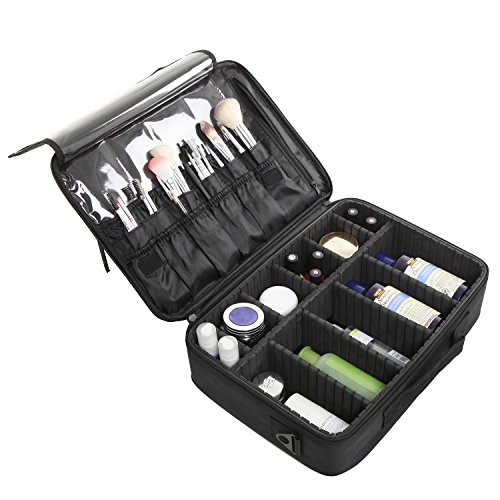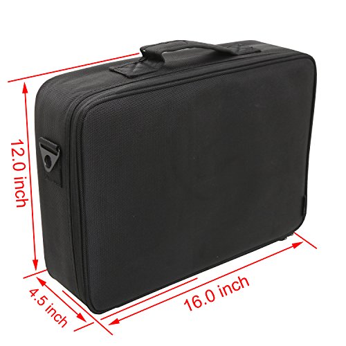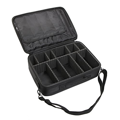 Professional Black Cosmetic Carrying Case / Makeup Travel Bag w/ Shoulder Strap & Adjustable Compartments