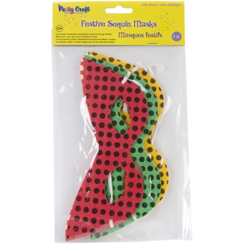 Multicraft Imports Festive Sequin Mask with Band, 3 Per Package