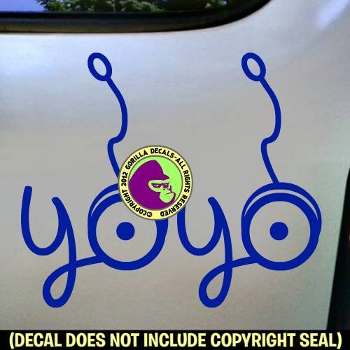 Product DescriptionPLEASE NOTE SIZE: Decal measures 7"x5.5" in BLUE vinyl with 2 Yo-Yos and word: Yo-Yo0