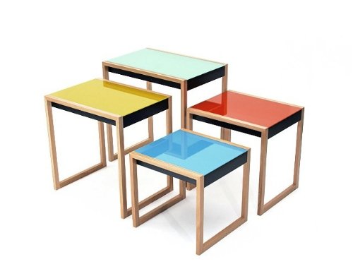 -. Title : Bauhaus Nesting Tables: Set of 4 Multi-colored Glass Tables