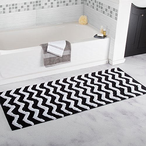Lavish Home 100% Cotton Chevron Bathroom Mat - 24x60 inches - Black
