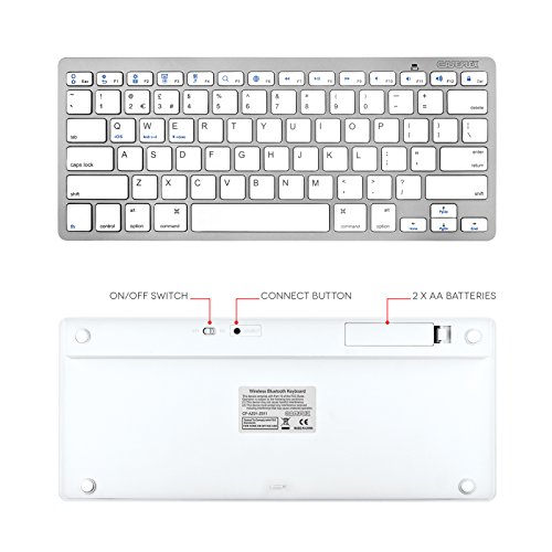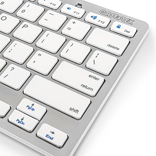 Caseflex Ultra Slim Wireless Bluetooth Keyboard For All iOS, iPad, Android, Mac, & Windows Devices - Silver & White