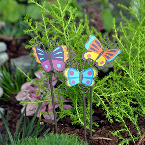 Miniature Fairy Garden Colorful Butterfly Picks, Set of 3