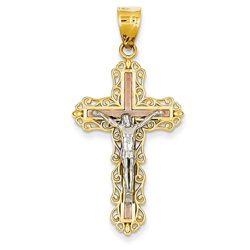 14K Tri-color Diamond-cut Crucifix Pendant