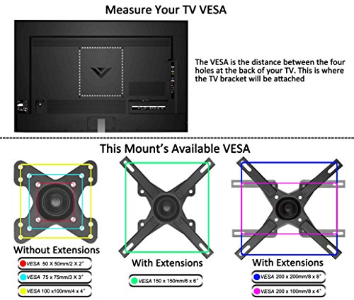 -. Feature : Fits for most of 26-42" TVs and monitors up to 33 LBS, with max VESA/mounting holes spacing of 200 x 200mm. Our mounts are tested with 4 times loading weight claimed. Images on left side will help you see if this mount perfectly fits your device in the aspects: VESA, stud location and possible blocked inputs. Not perfect? You can check other Mounting Dream mounts for BEST options. / Viewing becomes more comfortable: tilts display up 15° and down 15° to reduce glare, swivels display left or right according to your seats position. Pull out to 14" and retract back to 3", making your display alive to move. / Easy installation with decent instruction and all included hardware in pre-labeled bags. Rotation as post-installation adjustment allows perfect TV leveling. Comes with Velcro cable ties and bubble level as gifts. / Technology of robot welding makes whole unit sturdy and safe. / US based customer support answers your pre-purchase and installation questions. Our mount is 10 year warranted!