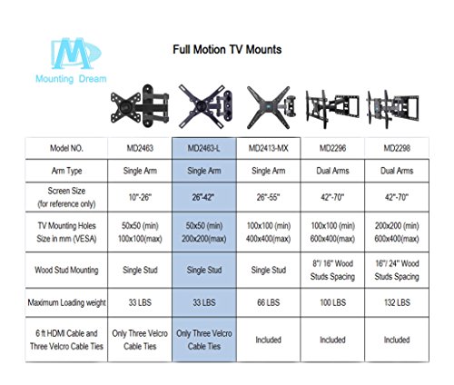 -. Title : Mounting Dream MD2463-L TV Wall Mount Monitor Bracket with Full Motion Articulating Arm for most 26-42 Inches LED, LCD TVs up to VESA 200x200mm and 33 LBS, with Rotation, Tilt, Swivel