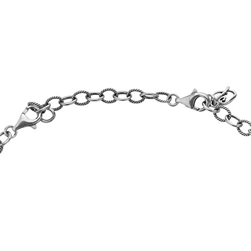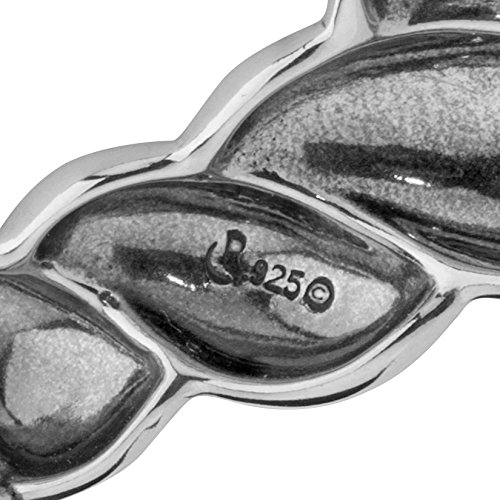 Sterling silver signature scrolls and rope detail sweep down into a v shaped twisted silver plaque.