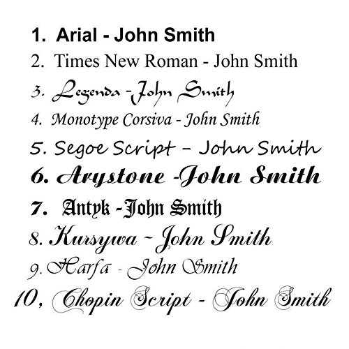 1) Choose your font name from the picture above. If you don't tell us which font to use we will choose the most popular.