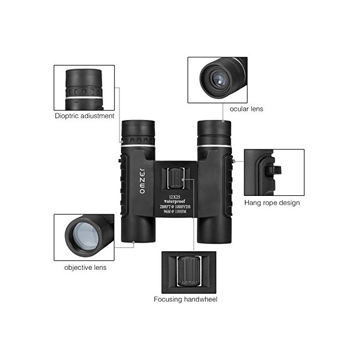 OMZER 12X25 방수 쌍안경 오름 배율 후구푸루후 저 조도 나이트 비젼 소형 경량 고령자인 성인과 아이에게 적합하 버드워칭 여행 콘서트 수렵 소풍 관전에 최적 BAK4 FMC