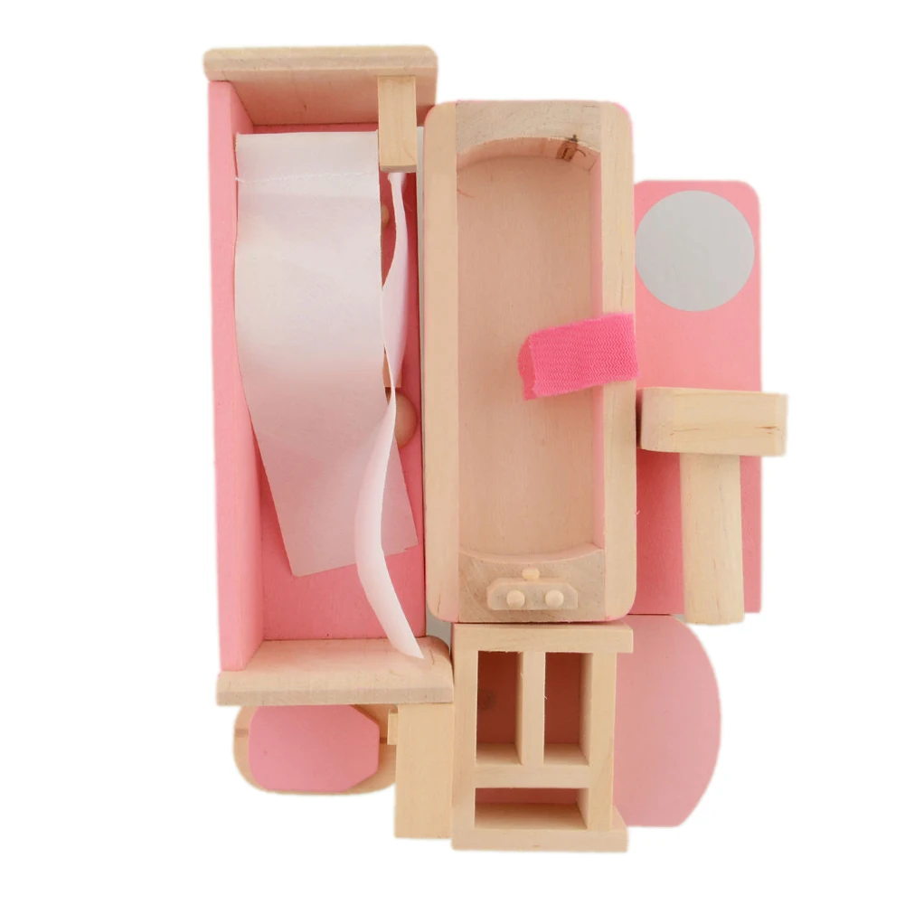 カラフルな、頑丈なよくできたドールハウス家具浴室セットのおもちゃ