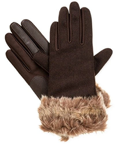 Isotoner Signature Faux-Fur Cuff Spandex SmarTouch Tech Gloves in Brown