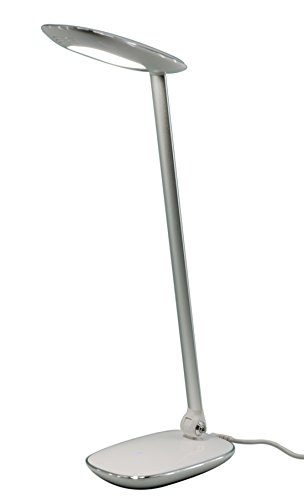 -. Feature : LED desk lamp / White finish with chrome accent / 15" in Height / Touch dimmer Switch with 3 steps dimming / 8W 420 lumens