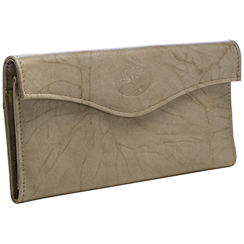 Buxton's naturally milled butter soft leather featuring a snap strip that secures 6 credit cards.