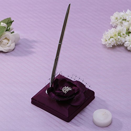KateMelon Wedding Decoration, Fuchsia Flower Wedding Guest Book and Pen Set