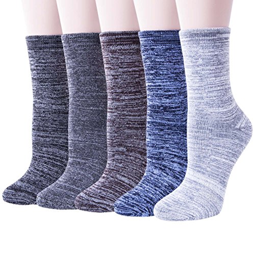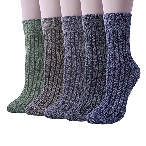 -. Title : 5 Pairs of Thick Knit Warm Casual Cotton Crew Winter Socks for Women