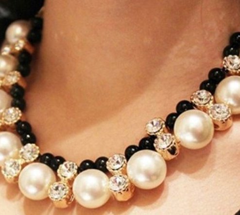 -. Title : 【ノーブランド品】 パール & ビジュー リボン ネックレス 2カラー R-724 (ホワイト×ブラック)