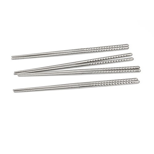 -. Feature : Chopsticks twist apart for travel / Eco friendly and reusable / Made from food grade stainless steel / Dishwasher safe / Includes convenient carrying pouch
