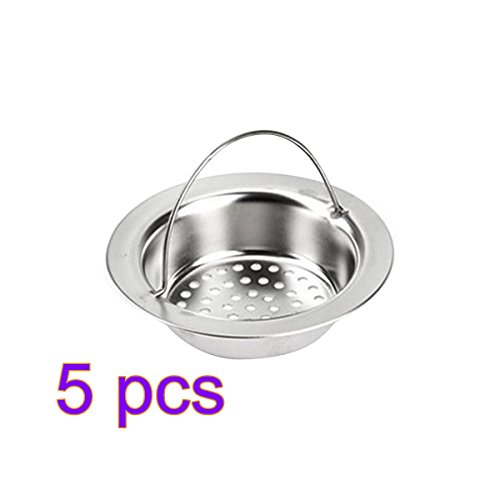 OULII 5pcs Kitchen Garbage Portable Sink Strainer Waste Plug Drain Stopper Filter Basket Stainless Steel