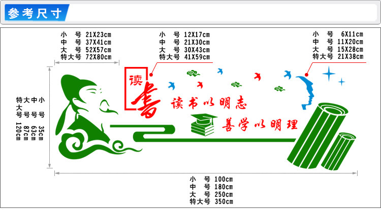 高中大学生图书室图书馆墙贴班级学校教室李白人物读书贴纸贴画