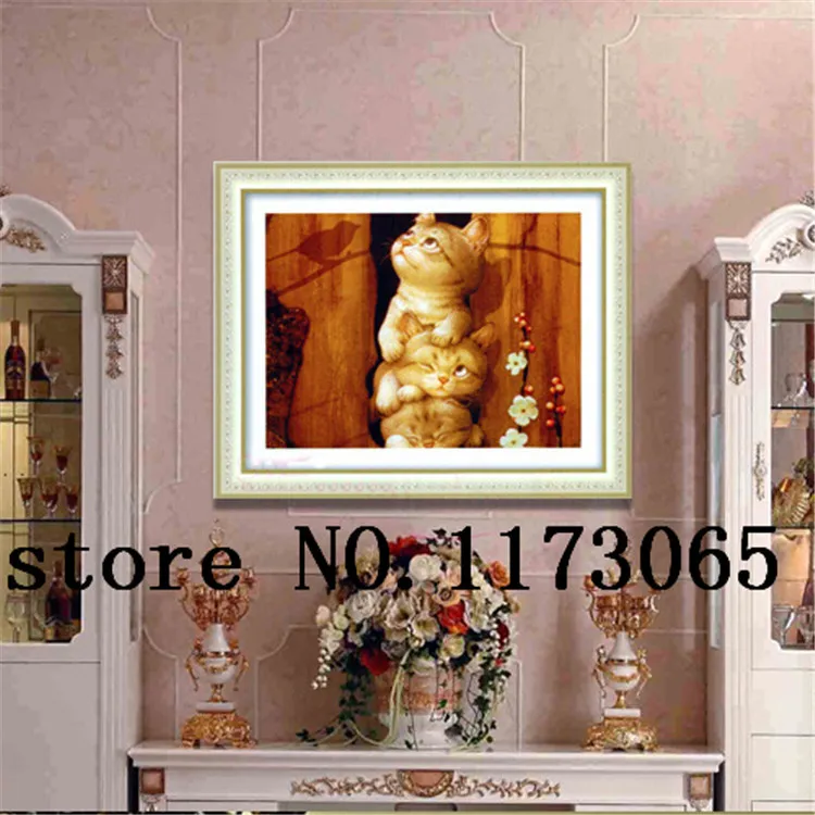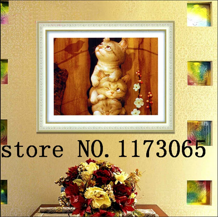 Needlework DIY DMC Cross stitch, full Embroidery kitsvunfinished Sets three cats pattern enough thread factory wholesale