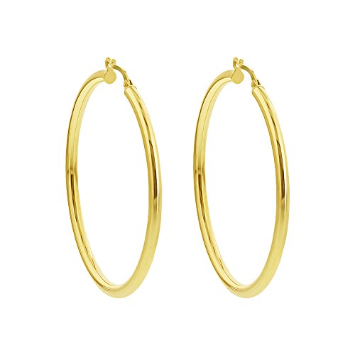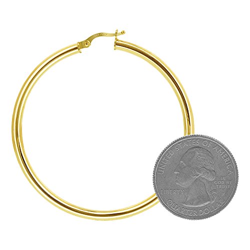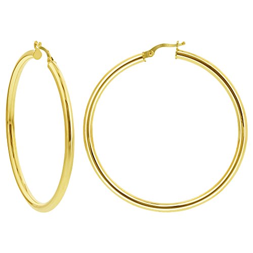 -. Title : 10k Yellow Gold 3mm Light Weight Hoop Earrings Made in Italy (50mm Diameter)